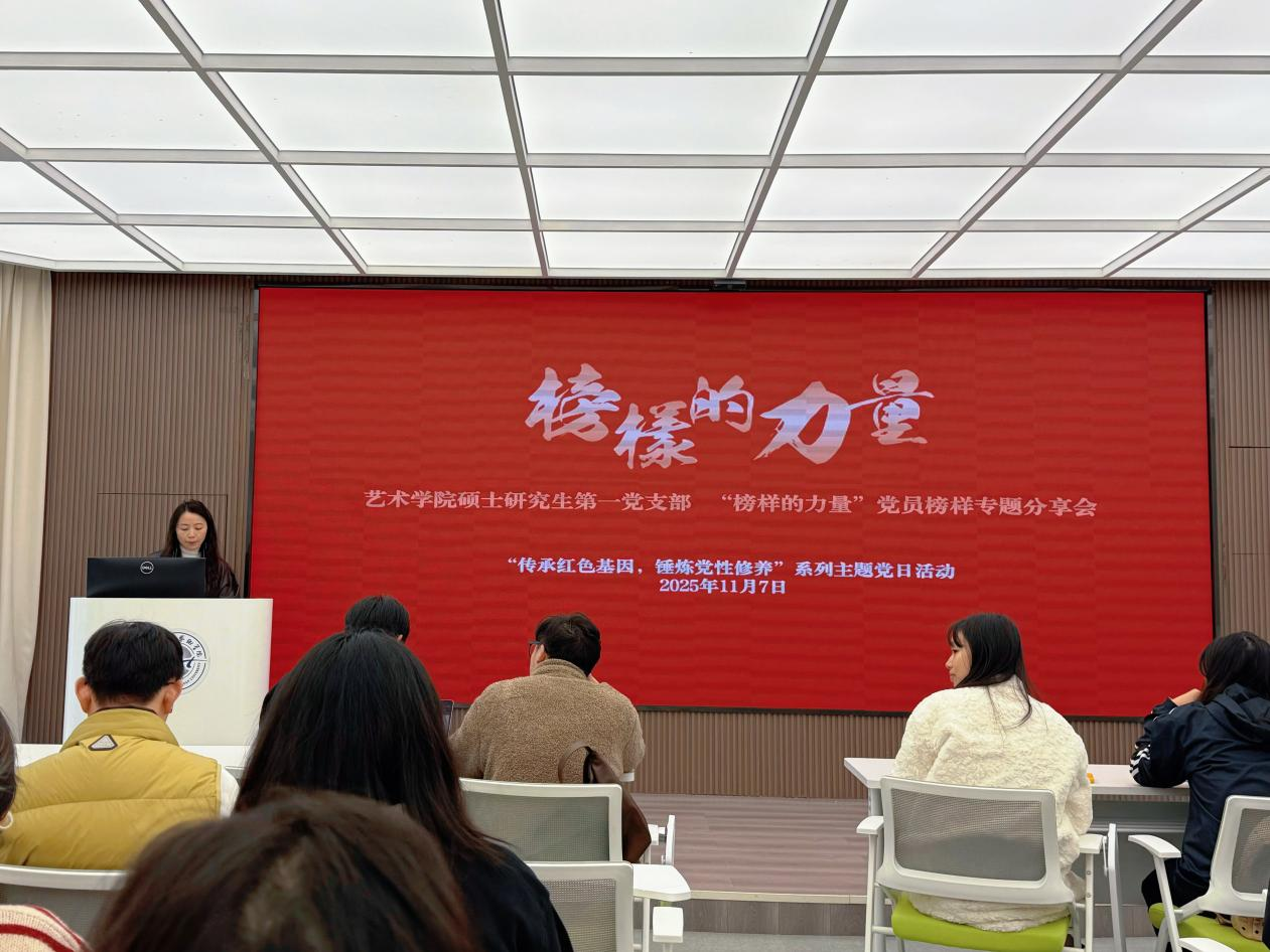 为深入推进“传承红色基因,锤炼党性修养”系列主题党日活动,充分发挥优秀党员的先锋模范作用,11月7日,艺术学院硕士研究生第一党支部“榜样的力量”系列党员榜样分享会(第二期)在湖畔报告厅举办,学院研究生会协办。本期分享会特邀2020届硕士毕业生党员李阳和2024级博士研究生党员吴桐作为分享嘉宾,为与会党员和入党积极分子带来了两场内容翔实、视角独特的专题分享。