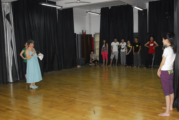 8日上午,Susan 女士为表演系师生开设了教学工作坊活动,由表演系青年教师焦阳担任翻译。Susan 女士的即兴训练生动有趣,参与工作坊训练的表演系同学们积极踊跃,两小时的训练结束后,同学们纷纷举手提问,反映积极。9日、10日上午,Susan 女士一行观摩了表演系各年级的专业教学,对表演系同学的良好素质表示赞许,认为表演系的教学理念、课程设置、教学过程非常严谨,尤其是四川大学在学生基础素质与综合素养培养的高度重视,是许多美国的戏剧表演学校所不能比拟的。