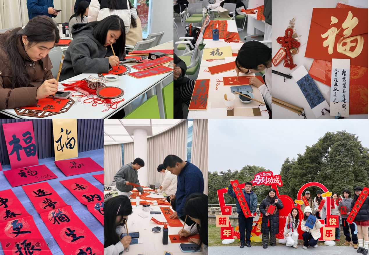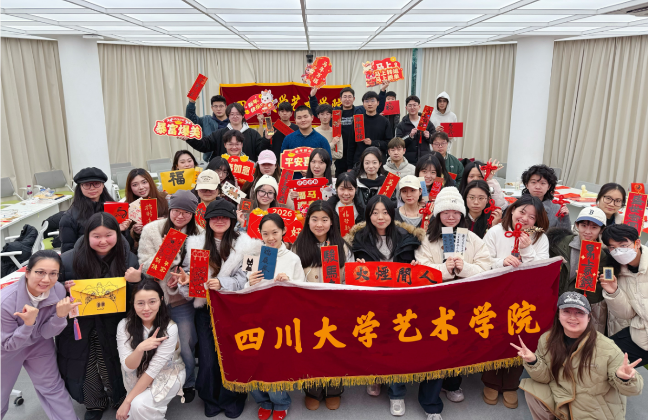 活动最后,同学们将完成的春联、“福”字和贺卡彼此赠送,也有部分作品由支部统一收集,将作为真挚的新年礼物赠予学院辛勤工作的老师们,全体党员手持各自作品合影留念。作为连续举办三年的品牌活动,“同心筑梦贺新春”主题党日活动已成为艺术学院岁末年初的一道风景——既凝聚党心,亦传承文化;不仅为党员提供了涵养文化自信、促进思想交流的生动平台,也如春雨润物,持续增强着基层党组织的凝聚力与向心力。