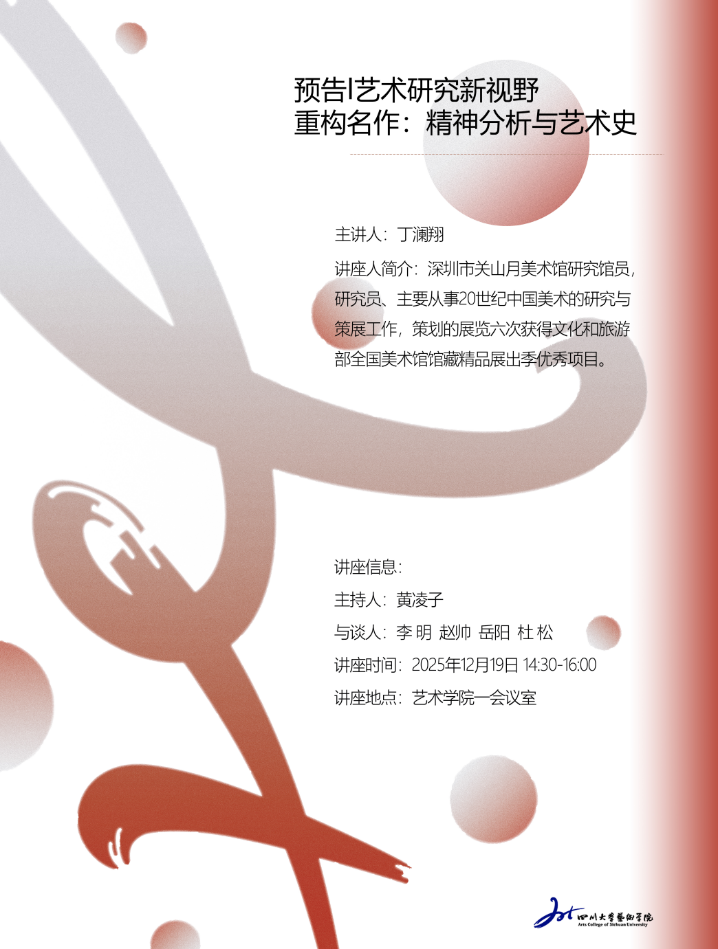 讲座内容:精神分析为理解艺术家的心理内容、释读作品的象征与意义提供了新的路径;却易陷入理论先行、过度阐释、忽视社会历史语境的危险。克拉克、夏皮罗、贡布里希、克里斯等艺术史家努力融合和内化精神分析理论,从不同角度思考艺术的形式与内容、重新界定艺术作品的意义理论,丰富了精神分析在艺术史领域的向度。本讲座将通过分析艺术家留下的大量描述私密情感和童年生活的材料,进入到他们的精神生活,再重新观照那些经典的艺术史名作,链接艺术家个人最隐秘的地方与广阔的艺术社会史的通道。