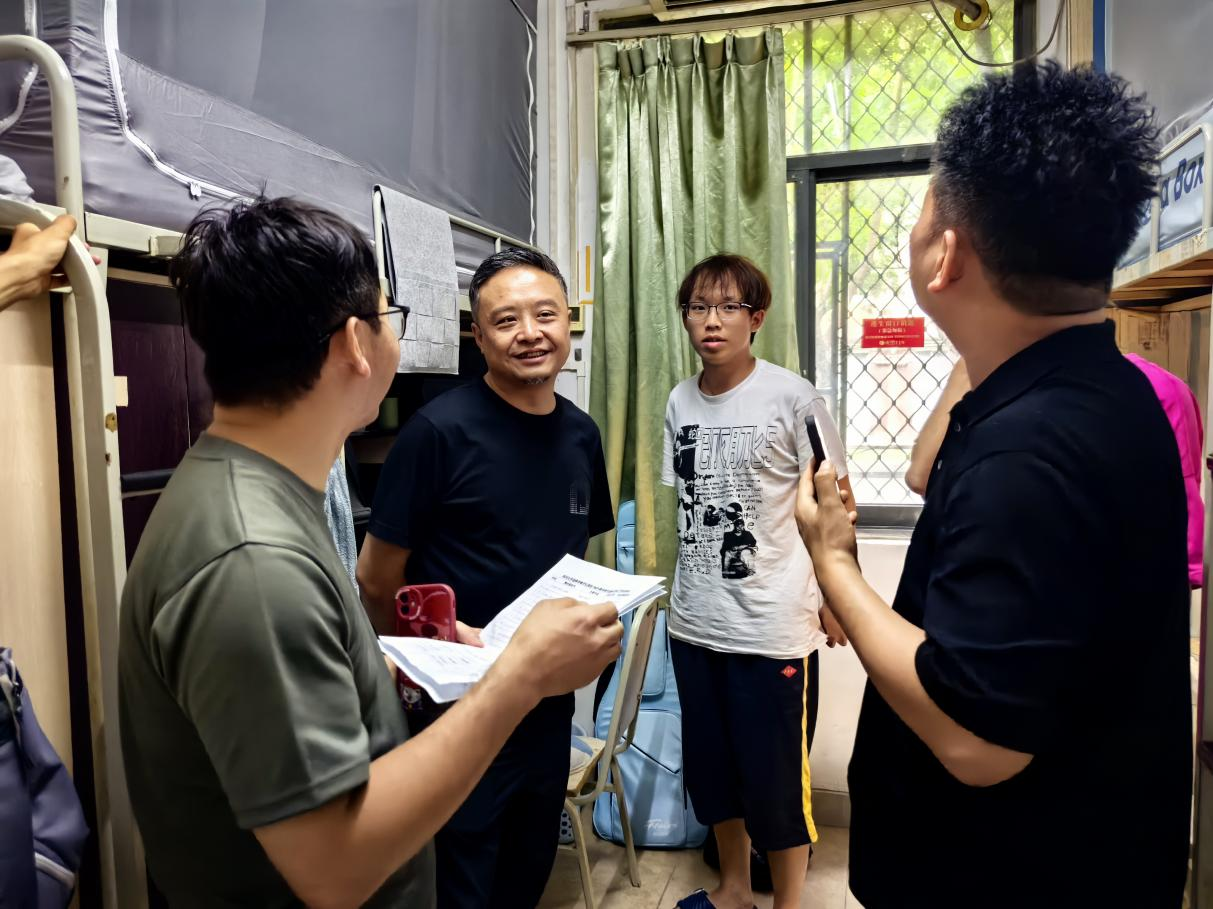 走访过程中,学院领导与新生亲切交谈,细致询问大家的军训进展、生活状况和适应情况,并实地查看寝室设施与环境卫生。“青锋”学长们也结合自身经历,为新生分享军训注意事项和校园生活经验,耐心解答疑问,帮助大家缓解初入大学的陌生感和训练压力。