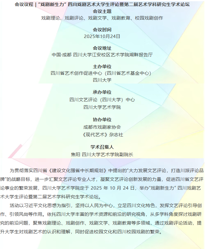 上一条: 初心点亮新征程,青春筑梦启华章 ——学院党委书记覃孟念为2025级新生讲授入党启蒙课 下一条:资讯|四川省大学生环境设计大赛暨第十一届“中装杯”全国大学生环境设计大赛(四川赛区)评审工作于10月18日在四川大学美术馆完成