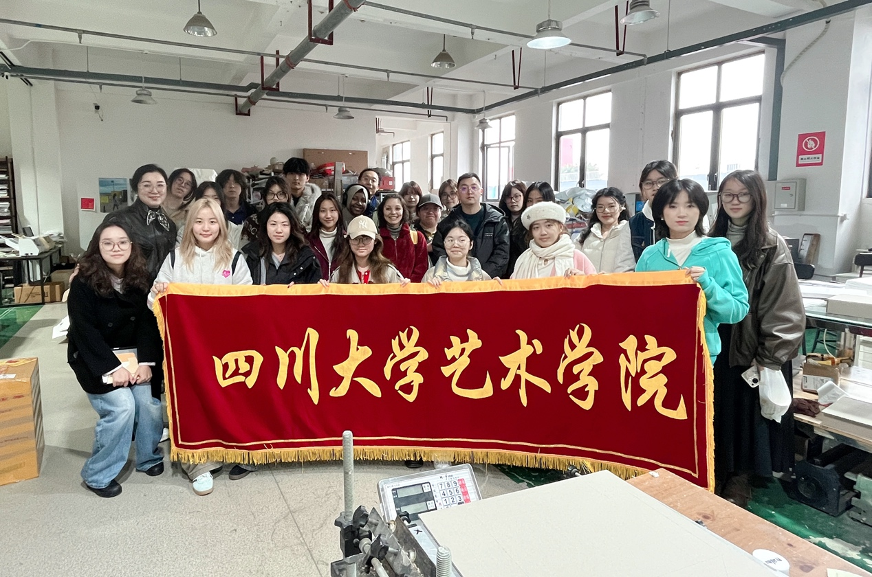 “阳光课堂”作为四川大学设计实践教学的重要环节,致力于打通设计创意、理想与制造生产等实际业态间的桥梁。此次阳光课堂参访的两家企业,恰好构成了从“材料”到“工艺”、从“基础”到“成品”的完整产业链观察。在人工智能不断介入和改写视觉创作工作路径的今天,对物理材质、工艺细节和实体呈现的深刻理解,已经成为设计师构建其不可替代专业价值的核心壁垒之一。此次行程不仅是一次工艺和材料认知的刷新,也为同学们的多媒体出版物设计实践奠定了基础,更在大家心中埋下一颗种子:完整的设计,诞生于创意与技术、美学与工学的交汇点。