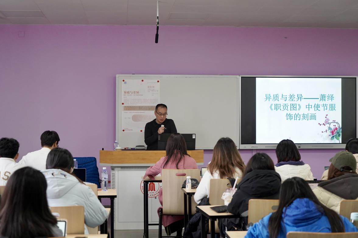 整场讲座内容严谨,论述深入,在图像与文献的交叉分析中,拓展了师生对中国古代绘画中“异域书写”及其文化机制的认识。叶原教授发言结束后,王友奎老师、黄凌子老师围绕讲座内容展开了进一步探讨,就《职贡图》的图像阐释路径、服饰刻画与文化认知之间的关系等问题进行了深入交流,进一步延展了本次讲座的学术视野。