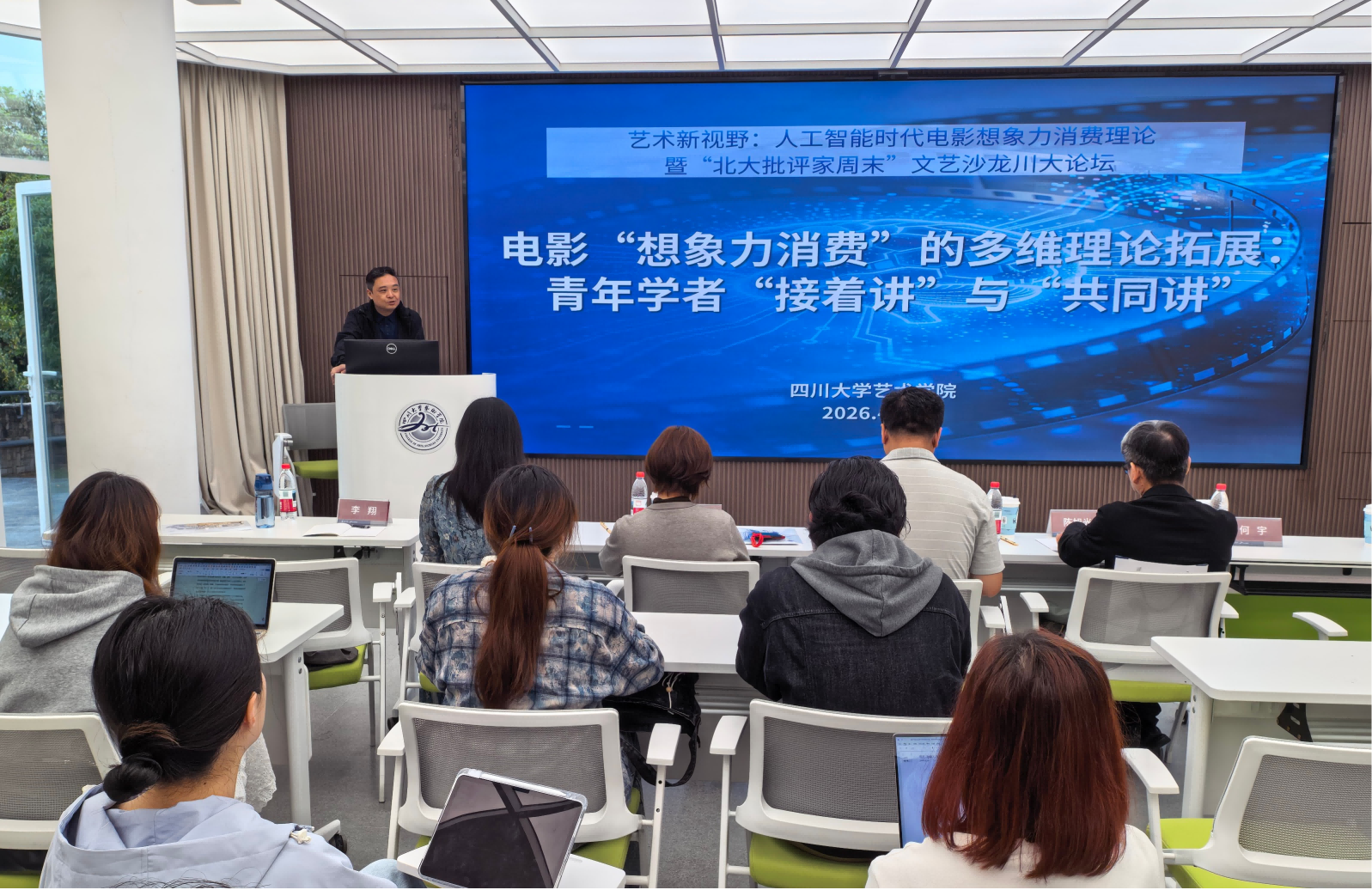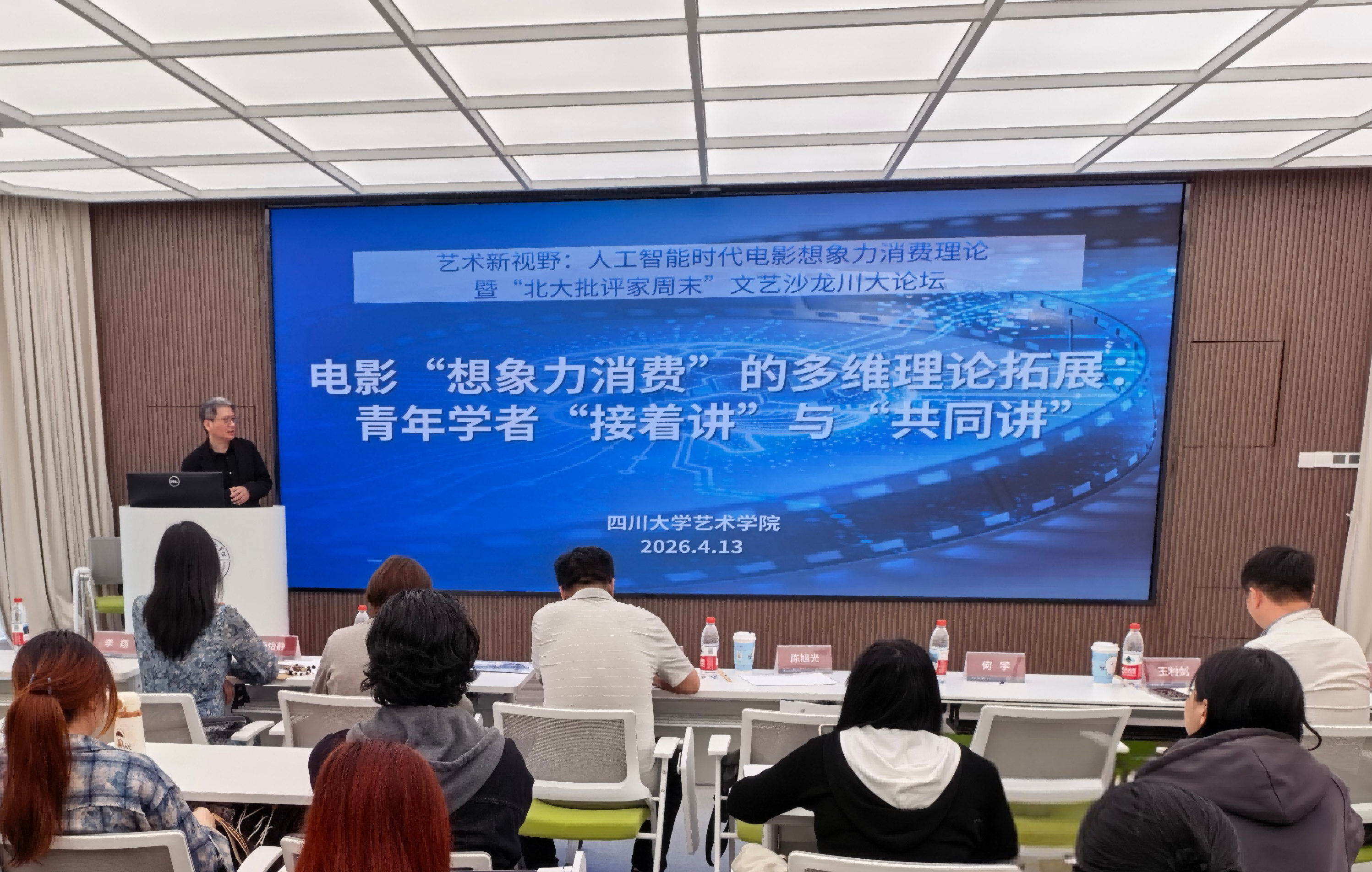 2026年4月13日上午,人工智能时代电影想象力消费理论暨“北大批评家周末”文艺沙龙川大论坛——《电影“想象力消费”的多维理论拓展:青年学者“接着讲”与“共同讲”》在四川大学艺术学院湖畔报告厅顺利举行。本次论坛由四川大学艺术学院影视与戏剧系主办,汇聚了来自多所高校的专家学者,围绕人工智能时代电影想象力消费理论的创新与发展展开深入对话。