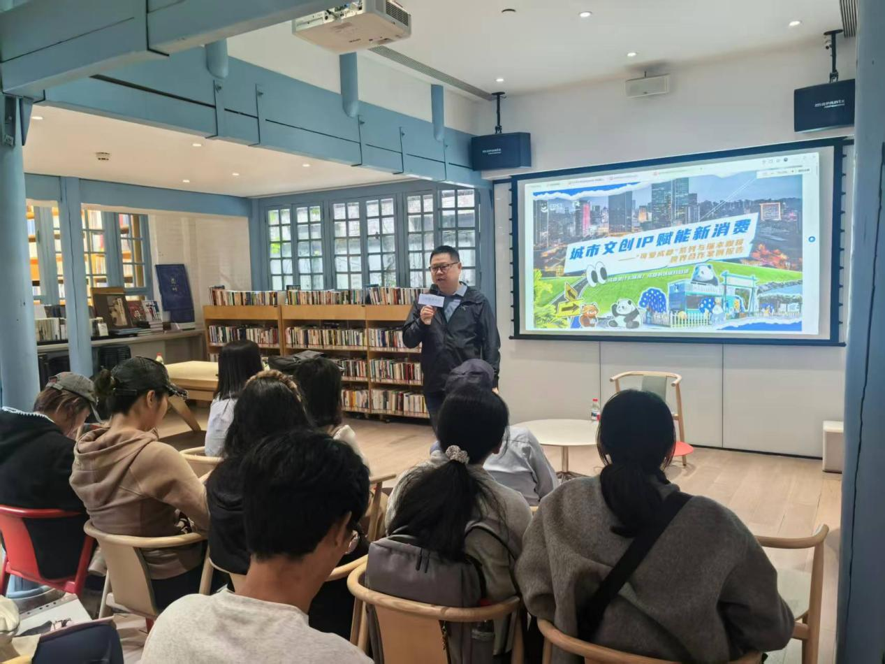 在产业认知环节,成都宽窄文创产业投资集团有限公司校企专班副组长李忠文深入介绍了文创投公司的战略布局及重点项目,以“瑞幸×成都文旅城市文创IP跨界合作”为案例,生动阐释了城市文化符号如何通过创意设计转化为消费热点。该案例凭借“成都到底是什么味道”的情感营销主题,联动瑞幸咖啡2万家门店形成全国性传播网络,实现了城市文化与企业品牌的双赢,引发了学生深入思考艺术创意赋能城市品牌的深入思考。