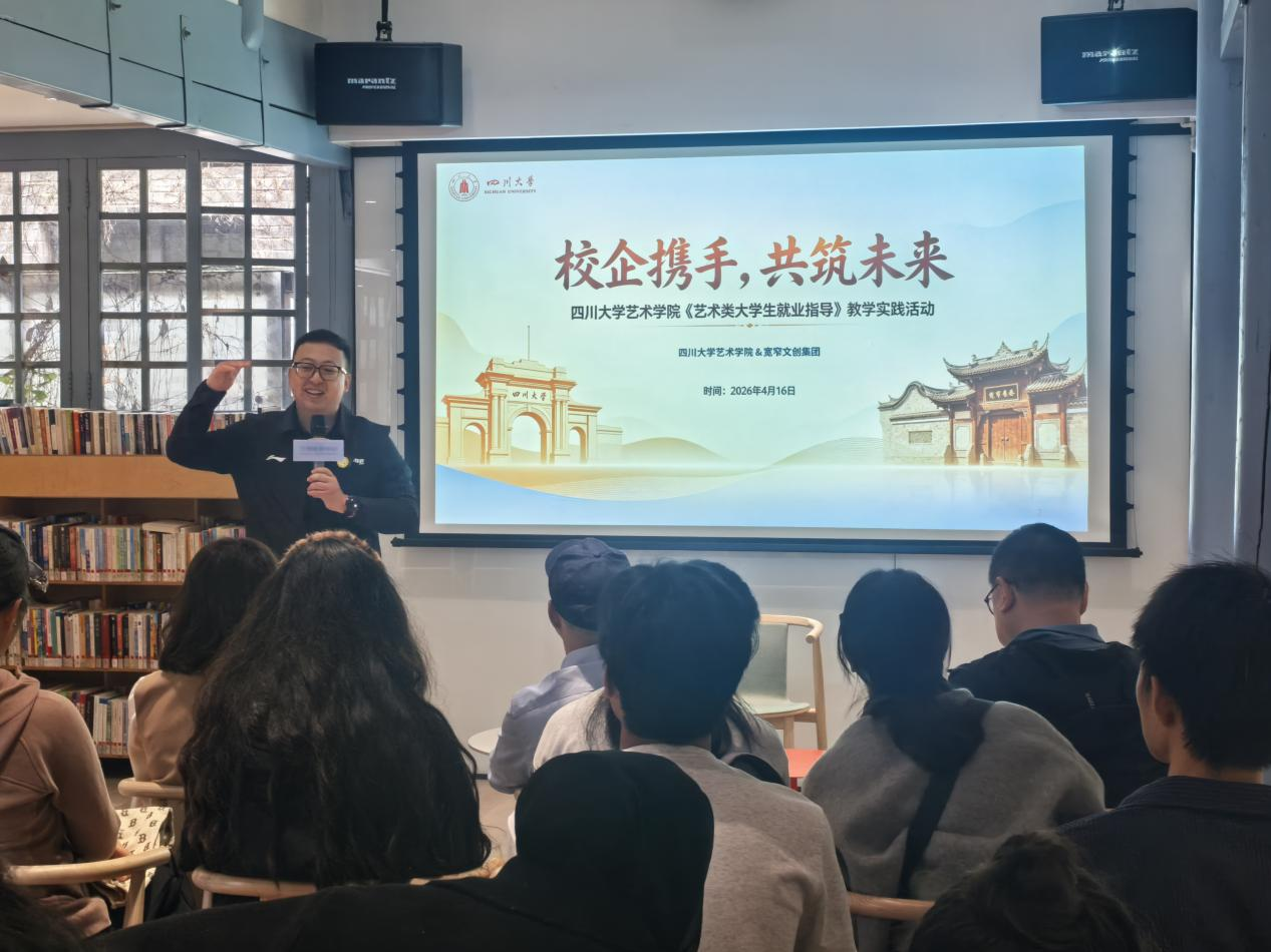 作为活动亮点,毕业于四川大学的宽窄文创投集团商管中心副经理周钰斌学长的分享令学子们倍感亲切。他结合自身职业成长经历,从求职技巧、职场适应到艺术专业如何转化核心竞争力进行了坦诚交流。“保持热爱、持续学习、拥抱变化”的三点忠告引发广泛共鸣。