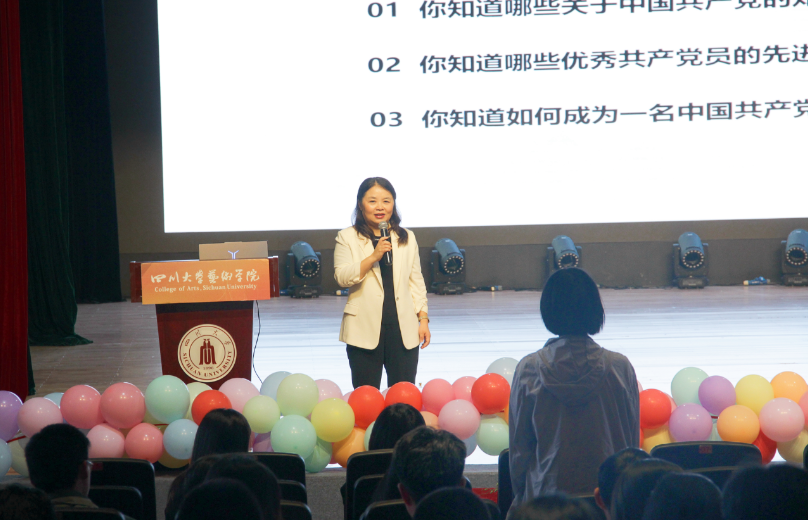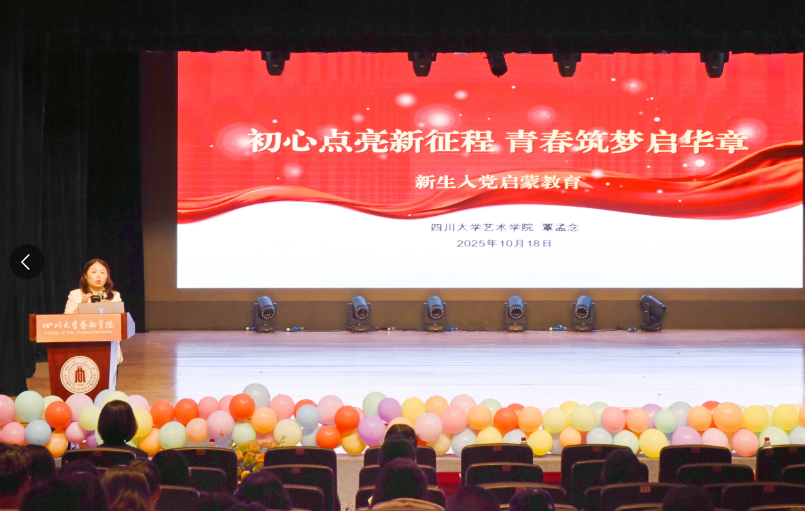 2025年10月18日下午,四川大学艺术学院党委书记覃孟念在艺术学院小剧场以“初心点亮新征程,青春筑梦启华章”为主题,为2025级387名新生讲授了一堂生动而深刻的入党启蒙课。