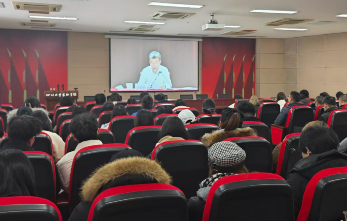 按照学校统一部署安排,12月12日,我院在A1-11举行2025年党员基本培训第三次集中大课,全院师生党员学习观看教育部党组书记、部长怀进鹏讲授的“深入学习贯彻习近平总书记关于教育的重要论述,以教育强国支撑引领中国式现代化”视频课程。