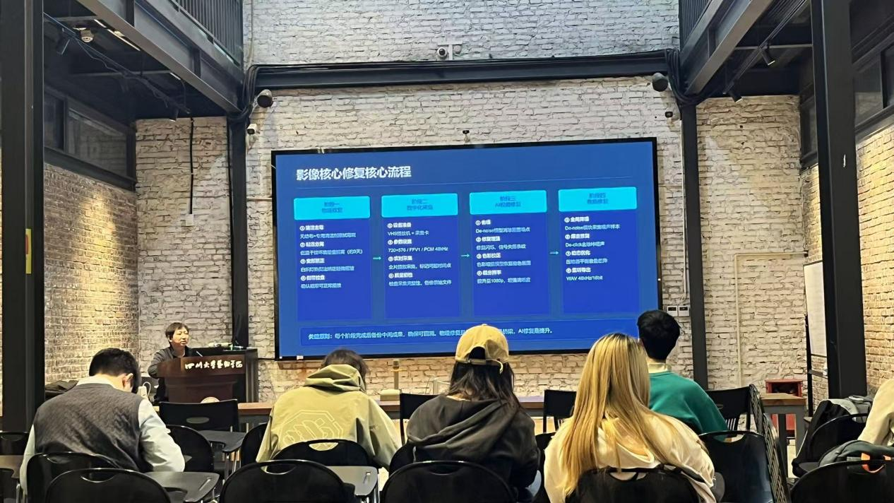 下午课程聚焦历史影像数字化修复,覆盖物理介质抢救、数字化采集、AI智能修复、存储管理全流程。讲师详解胶片、磁带、光盘等载体特性与损伤类型,梳理评估、清洁、采集、质检等核心环节,以开国大典影像修复为例,对比传统手工与现代AI技术的效率差异,探讨AI修复的伦理与版权问题,并演示专业软件操作要点。